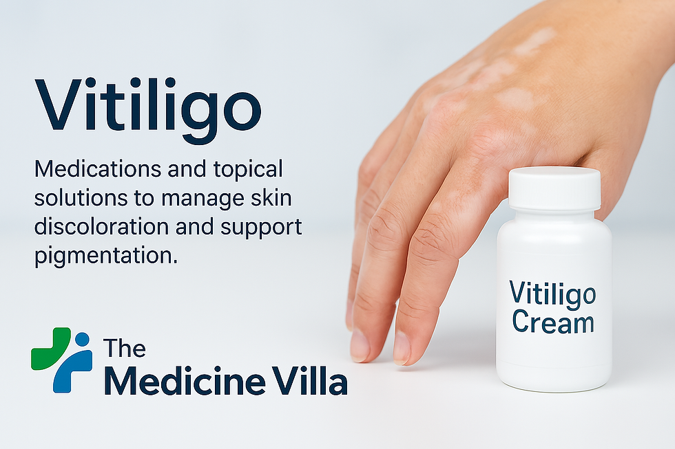 Manage vitiligo confidently with The Medicine Villa’s selection of clinically recommended treatments designed to restore skin pigmentation and reduce white patches. Vitiligo is a chronic condition where the skin loses its natural pigment, resulting in patchy, discolored areas. Our treatments are formulated to stimulate melanin production, balance skin tone, and improve overall appearance.
